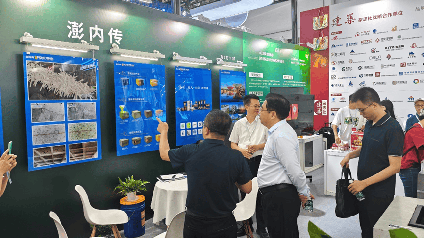 北京澎內傳公司展出了全球領先的混凝土滲透結晶自愈合技術以及系統(tǒng)產品,展板上生動形象的展現出滲透結晶的技術原理、電鏡下的結晶形貌和實效工程照片等;實物水池模型與試塊直觀地看到結晶自愈合后的功效。澎內傳先進的滲透結晶科技不僅能從根本上解決混凝土結構的滲漏水頑疾,還能提高混凝土整體的耐久性,延長結構的使用壽命60年。產品低碳環(huán)保,為我國造就高質量建筑和可持續(xù)發(fā)展的目標提供堅實的技術基礎和科學的安全保障,更好的滿足人們對好房子的需求。